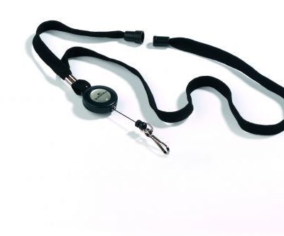 Durable Textile Lanyard With Badge Reel Black (Pack of 10)